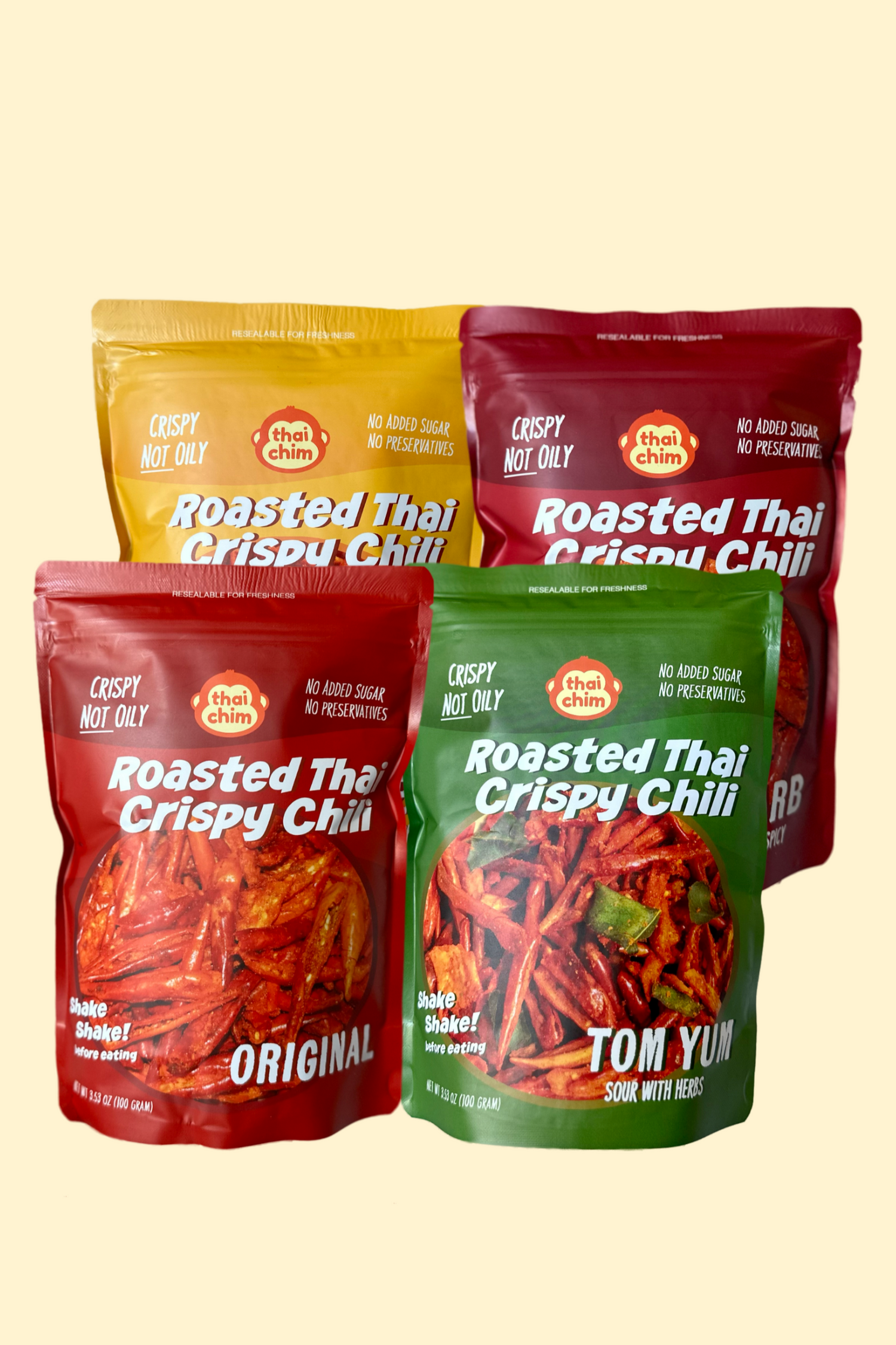 THAICHIM LLC was founded by a Thai woman who loves cooking and sharing authentic Thai recipes. Our Roasted Thai Crispy Chili is a healthier choice, crafted through a roasting process with minimal palm oil spray, which helps reduce cholesterol and trans fats compared to traditional frying. We take pride in carefully selecting chilies from high-quality local sources in northern Thailand, ensuring only the freshest and finest ingredients make it to your table. Perfect for adding crunchiness to any dish or enjoy alone as a snack!